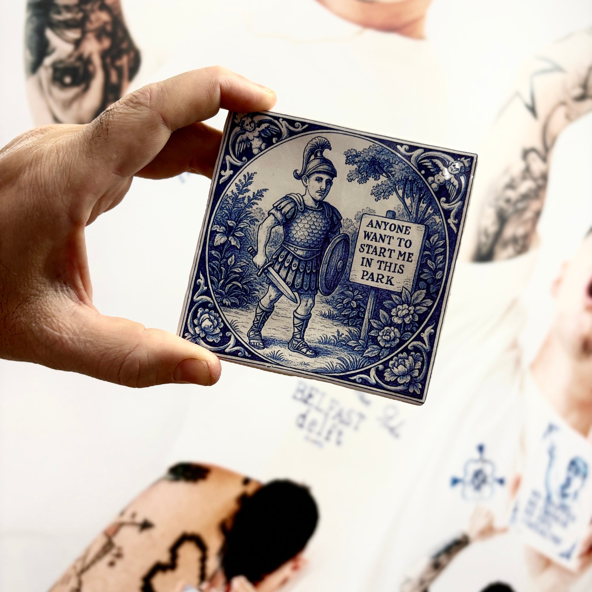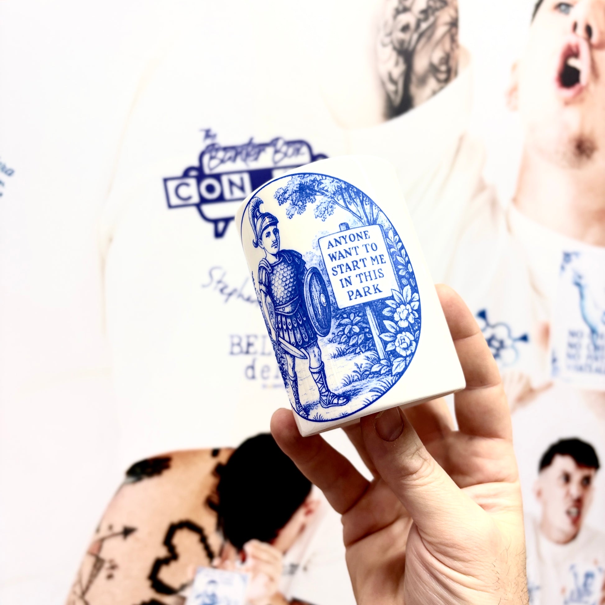 Fresh out of the kiln, this piece is part of a collaboration between CONAIR The Banterbox X Stephen Farnan Studio / BELFAST delft. Each design celebrates the characters, carry-on, and charm that make this place what it is. Lifted straight from one of Conor’s classic skits, these wee pieces of art deliver proper Belfast wit every time you look at them.