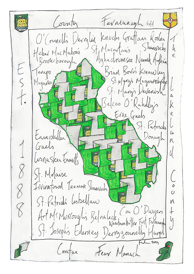 These sketches are part of a body of work by Stephen that focus on the 32 counties of Ireland. The GAA County Colours collection celebrates all the GAA clubs in each county. Our frames are black solid wood with simple clean edges. We frame in-house, which allows us to make sure every piece is perfect!