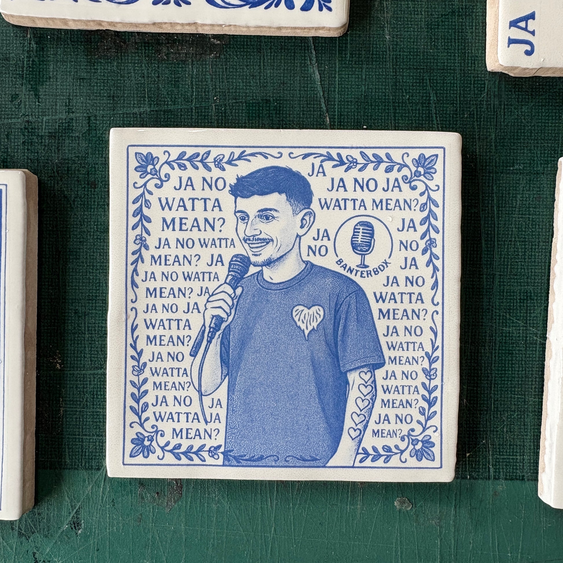 Fresh out of the kiln, this piece is part of a collaboration between CONAIR The Banterbox X Stephen Farnan Studio / BELFAST delft. Each design celebrates the characters, carry-on, and charm that make this place what it is. Lifted straight from one of Conor’s classic skits, these wee pieces of art deliver proper Belfast wit every time you look at them.