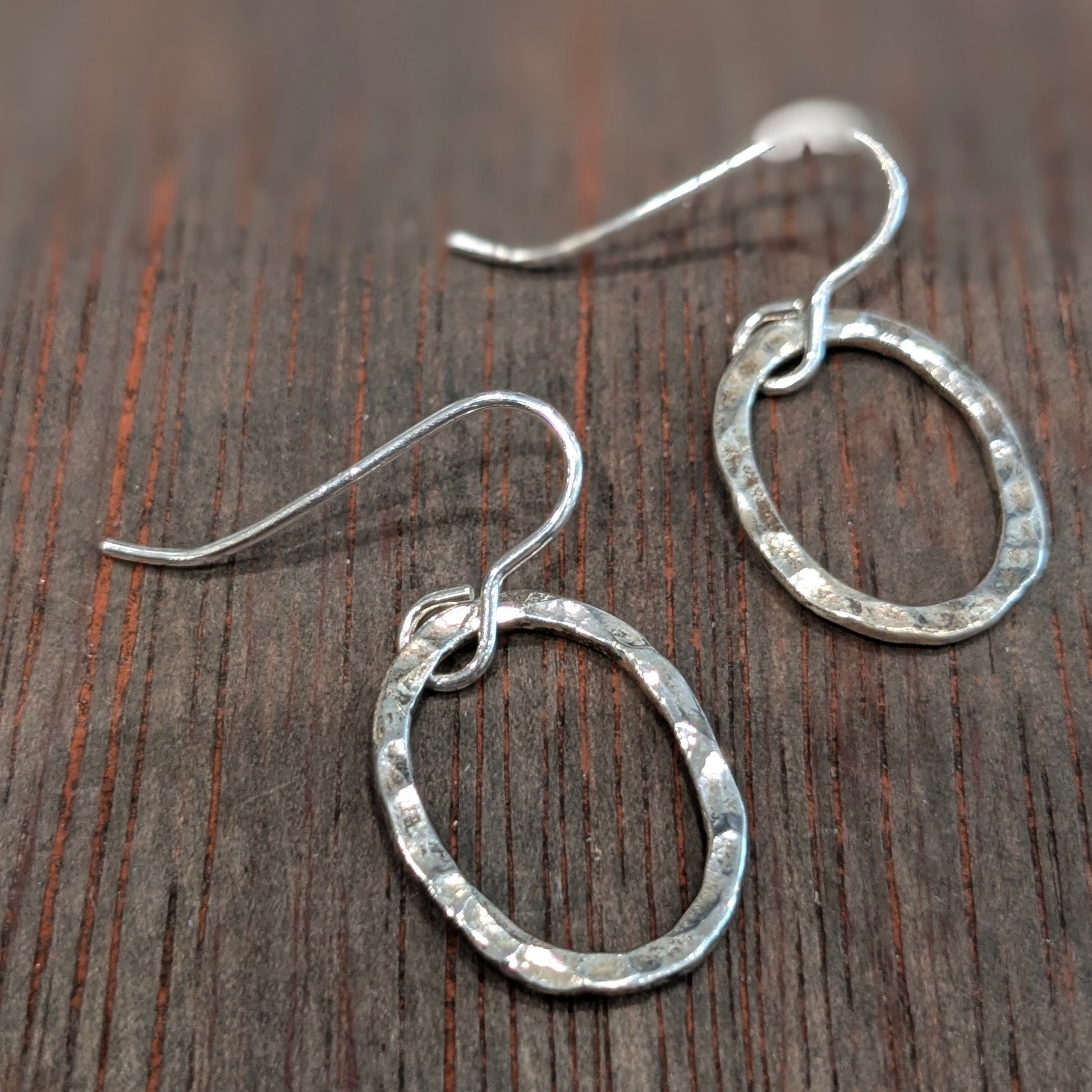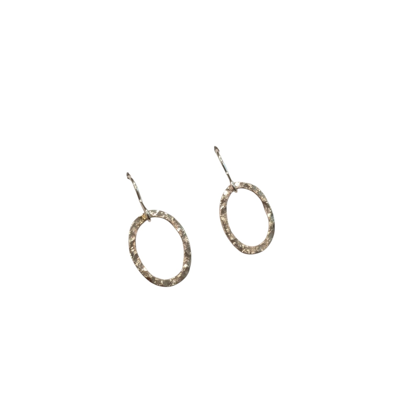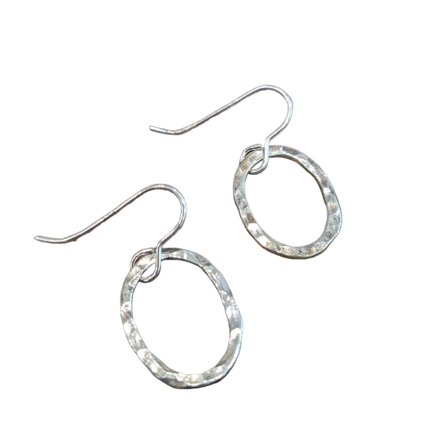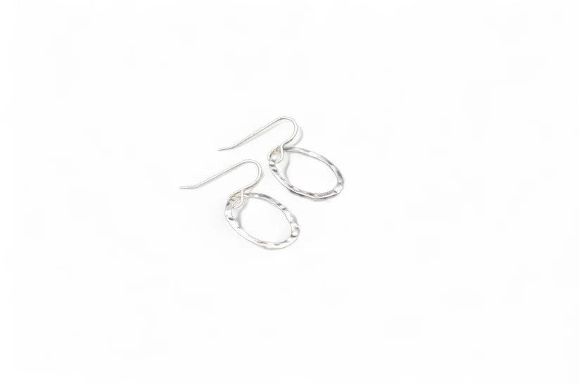 The Tarrea earrings are as stunning as they are simple, a single hammered and beaten oval ring on a silver hook