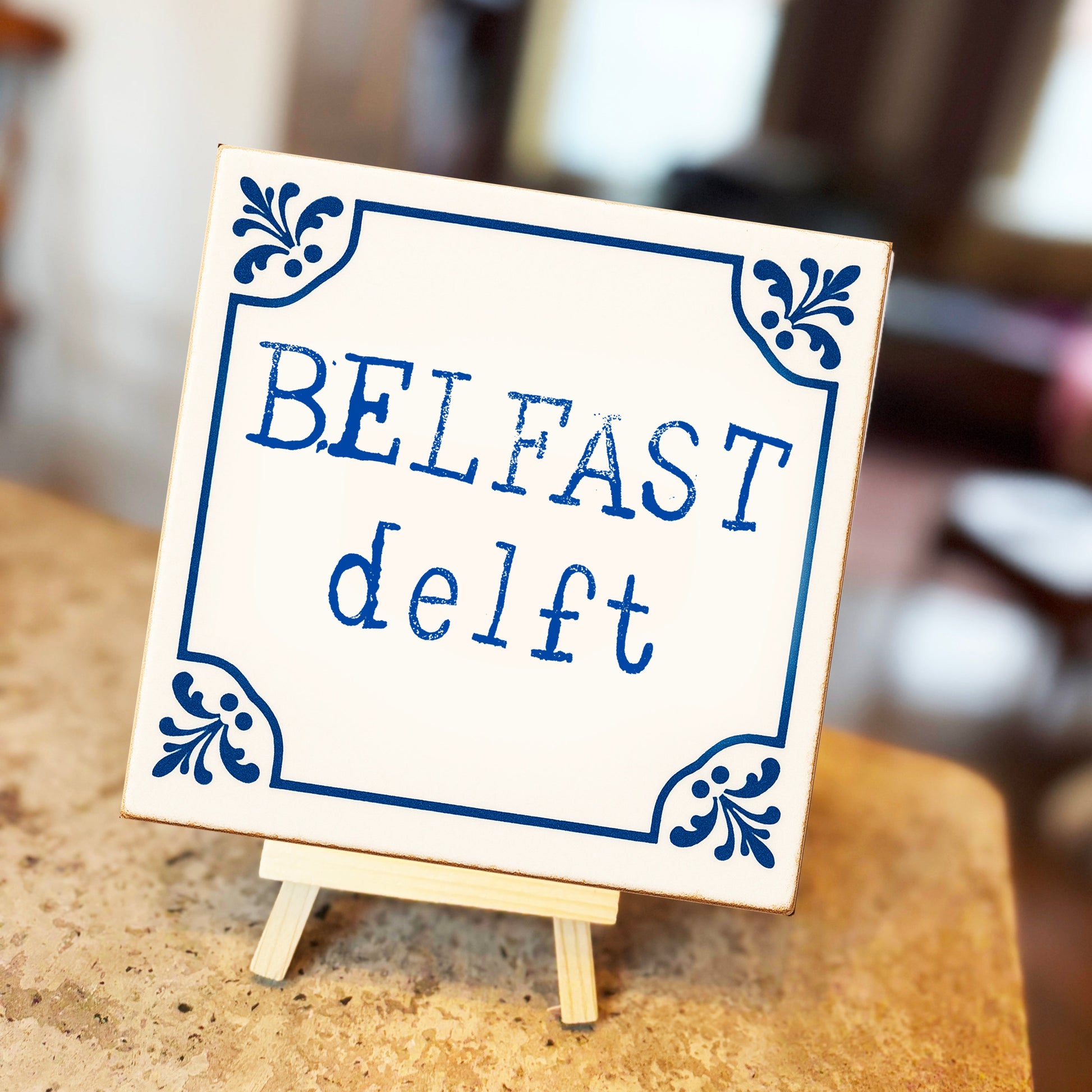 Our Belfast Delft tiles are true ceramic piece - Kiln fired to 850°C in our Belfast studio each tile begins as an original watercolour sketch by Stephen. Inspired by the iconic blue and white Delftware of the Netherlands, itself influenced by Chinese Ming dynasty porcelain, these tiles blend tradition with a contemporary, playful spirit. Each piece is reflective and experimental. They tell small visual stories designed to spark conversation.