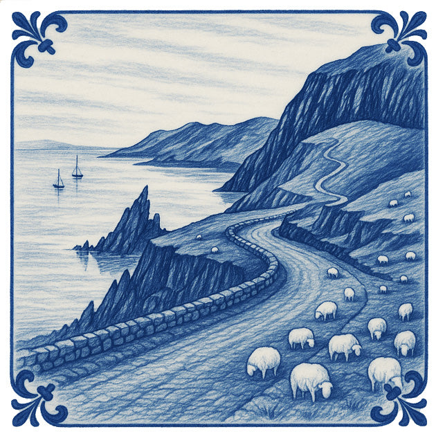 Stephen's BELFAST delft designs take inspiration from 17th Century Dutch Delftware, itself inspired by centuries old Chinese Ming Dynasty porcelain. Each tile begins with a memory, a moment from childhood or recent history, and is brought to life with craft, imagination, and playful AI experimentation.