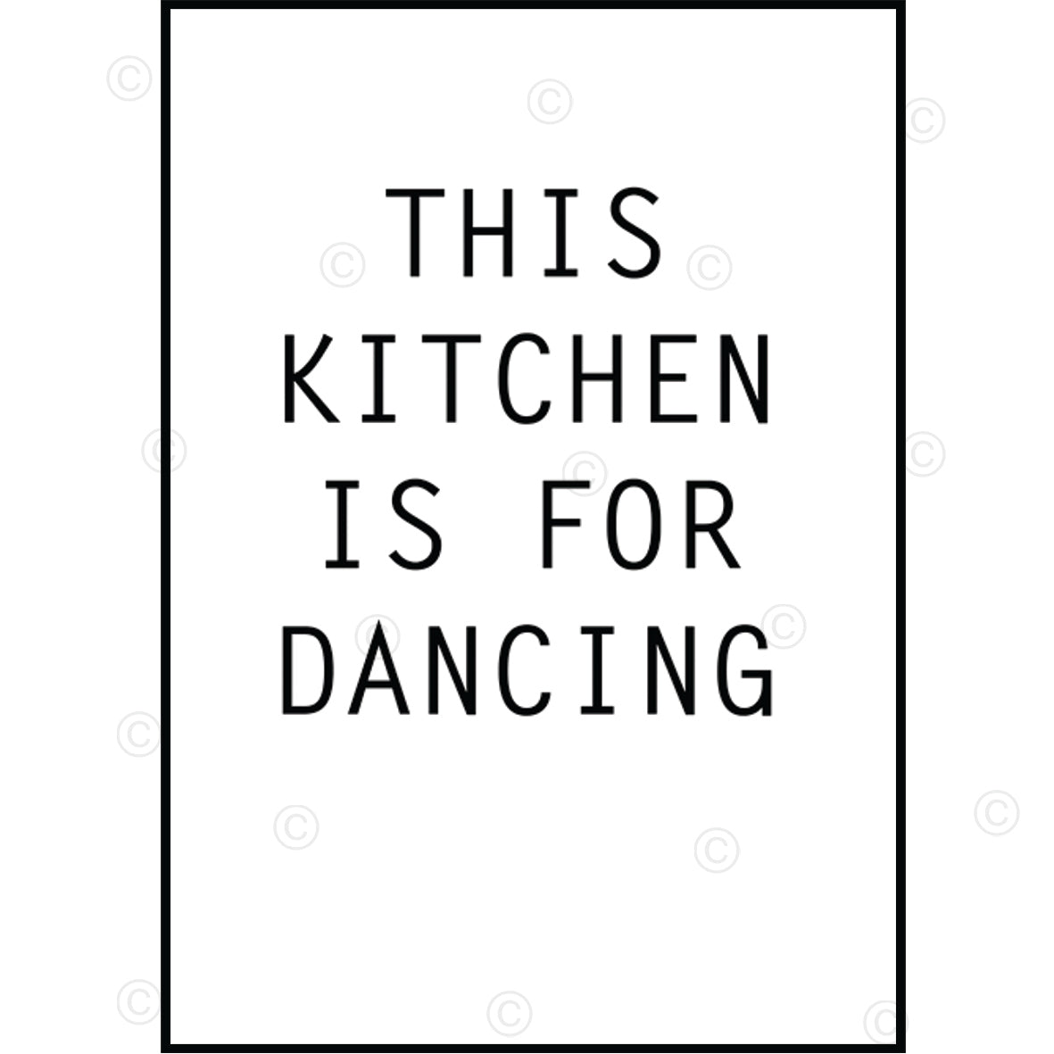 THIS KITCHEN IS FOR DANCING - White - Contemporary Cool Paper Aluminium Poster Print Art for the Home